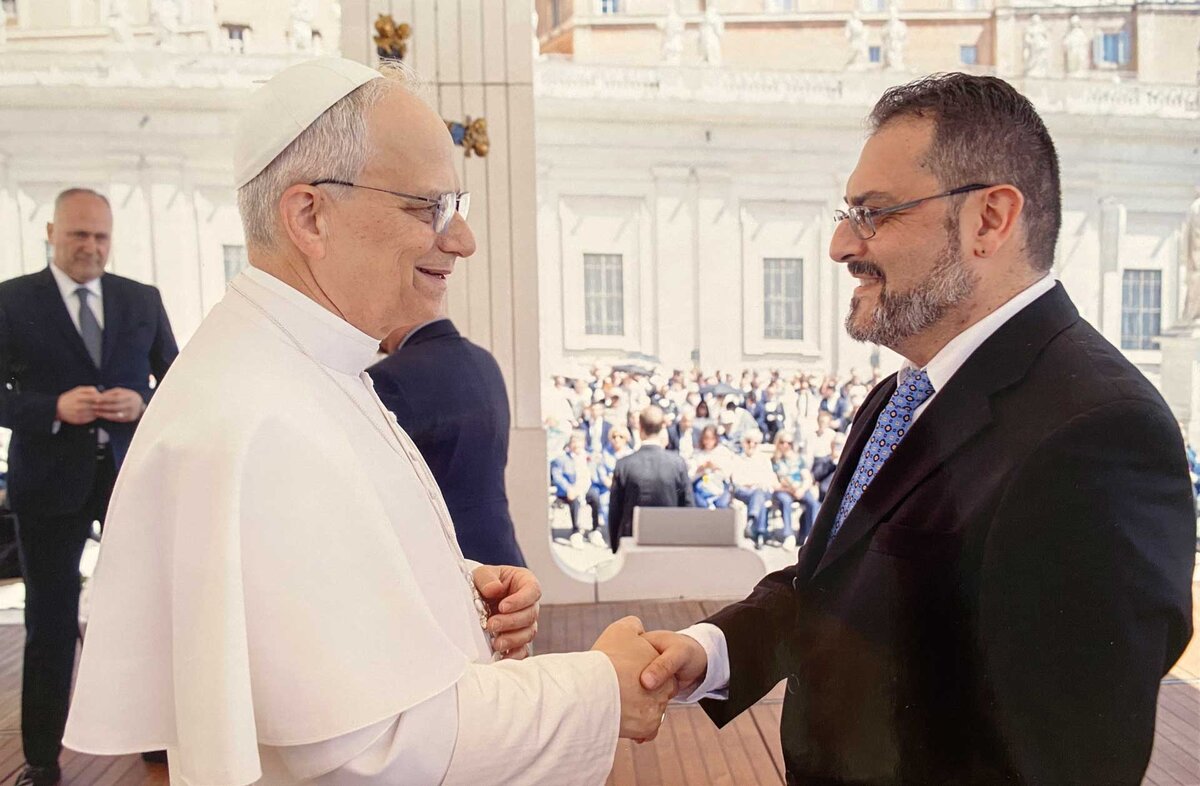Mario Galgano, Schweizer Redaktor bei Vatican News, in einer persönlichen Begegnung mit Papst Leo XIV. | Bild: Vatican Media