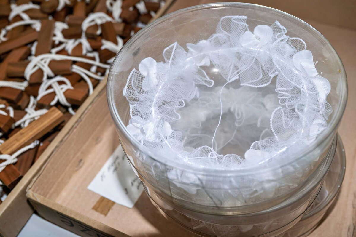 Die 35 Erstkommunionkleider und 20 Kränze stammen von der Kirchgemeinde Menznau. «Wir brauchen sie nicht mehr, weil wir vor zwei Jahren neue Kleider angeschafft haben, da wir zunehmend Schwierigkeiten hatten, die Erstkommunikant:innen mit der passenden Grösse auszustatten», erklärt Kirchenrätin Patricia Näf.